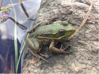 Fig. 1. Recently metamorphosed green frog (Lithobates clamitans) at the edge of a pond (photo by Laura Martin)