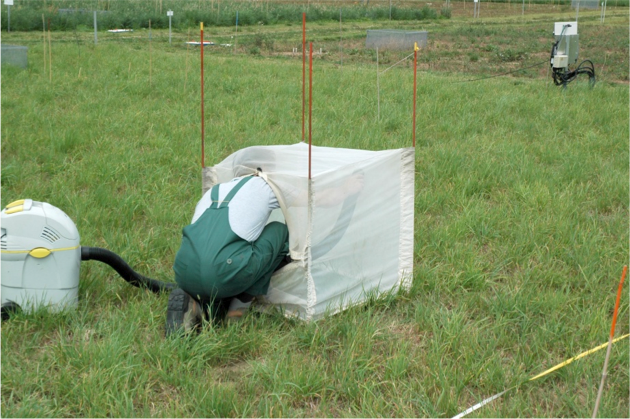 Gathering up sufficient and useful data for answering questions concerning entire communities is always a strenuous and costly job. It is actually only feasible when working in cooperation with a large team. We were lucky to be involved in an appropriately large team, the Jena Experiment, a controlled biodiversity experiment [http://www.ecology.uni-jena.de/en/Jena_Experiment_Inst_of_Ecology.html]. The dimensions (10 ha, 80 plots each 20x20 m with a set plant species diversity of 1, 2, 4, 8, 16 and 60 as well as 1,2,3 or 4 functional plant groups, and numerous smaller plots) are unique and turned out to be the right platform for asking “bigger” questions about structure and function in grassland communities. A lot of periodic work, in particular weeding, was done by a capable maintenance staff (5 professional gardeners and numerous student assistants) so that the only thing left to do was to collect our own data. Nevertheless, for our closer small team (with some support of a few student assistants) even that was quite a strenuous job but all the effort and suffering (not to say blood, sweat and tears) are not always obvious if one looks at the end result on just a few hundred Kbyte of data we hold in an excel file. We collected arthropods 5 times, from May to October in 2005, on 5 quadrats randomly placed within the core area of 50 big plots (16 monocultures, 16 four-species, 14 sixteen-species and four 60-species mixtures) using suction samplers combined with biocenometers (see photograph) as well as using pitfall traps. All in all, we successfuly accrued 322 arthropod species/taxa with 81658 individuals that we could exploit in the end.