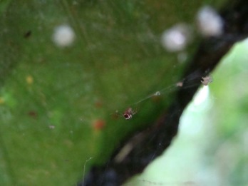 Figure 4. Pocobletus sp. and its predators. Notice the small Pocobletus in the lower section of the web and the slightly bigger Argyrodinae spider in the upper part.