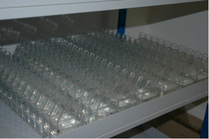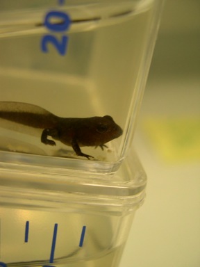 We use cell culture flasks to house tadpoles individually through metamorphosis. This system allows us to replicate extensively while keeping the individual animal the unit of replication. Replicating treatments 30 or 40 times is easily achievable for most experiments using this approach. Not bad for a vertebrate.
